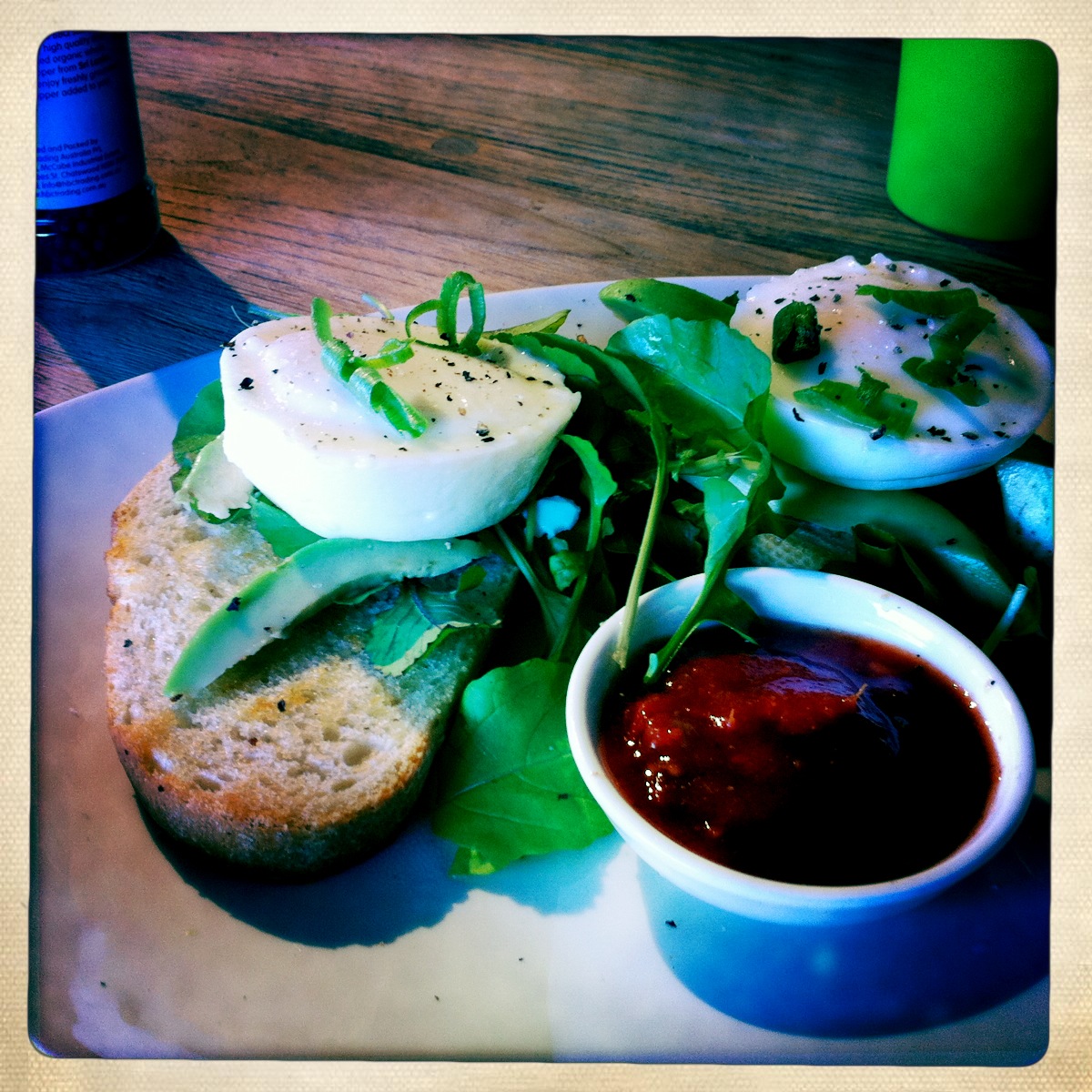 I ordered a Cappuccino and Poached Eggs on Toast with Rocket, plus extras of Tomato Chutney and fresh slices of Avocado, which cost me less than AU$15. I was advised that the bread on that particular day was freshly baked (not by them) Pane Di Casa, however the type of bread available does change regularly. The rocket was fresh, the eggs perfectly poached and the Tomato Chutney and fresh Avocado ideal extras.