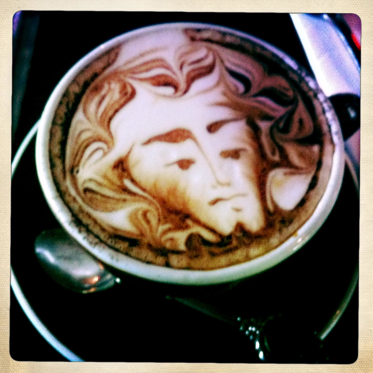 The decor at Rehab is super funky with grandma’s brown velvet couch in the corner, weird-ass chalk drawings on the walls of bald men and chemical structures (shit, it’s been a while since I did second year Chem), red glowing chandeliers and even a bit of astro turf out the front. Like another popular cafe in Cairns *cough* Caffiend *cough* it’s very Melbournesque except with Caffiend it’s more alley way setting that makes it rather than the decor. I did find Rehab a little bit dark inside but as a bonus at least MS couldn’t see how dry my skin was from being out at sea for the last few weeks. No I am not an old sea hag, it’s the airconditioning I swear! We weren’t waiting long for our cappuccino’s to arrive and when they did we were super amazed by the super amazing coffee art on top that can only be described as pure genius. I get excited when the barista does the whole palm frond/leaf thing on the top of my foam but wow… this was a face. A very delicately drawn face. MS and I admired both of our cappuccino’s wondering how on earth the barista managed to do it but in the end we figured we would just ask him when we payed for our meals. Now the only problem with the coffee art is that our coffees were actually cold. Maybe because they weren’t particular hot in the first place or maybe because the coffee art took just that little bit too long. The coffee, however, was a damn fine cup of coffee I just would have preferred it to be hot rather than luke warm.