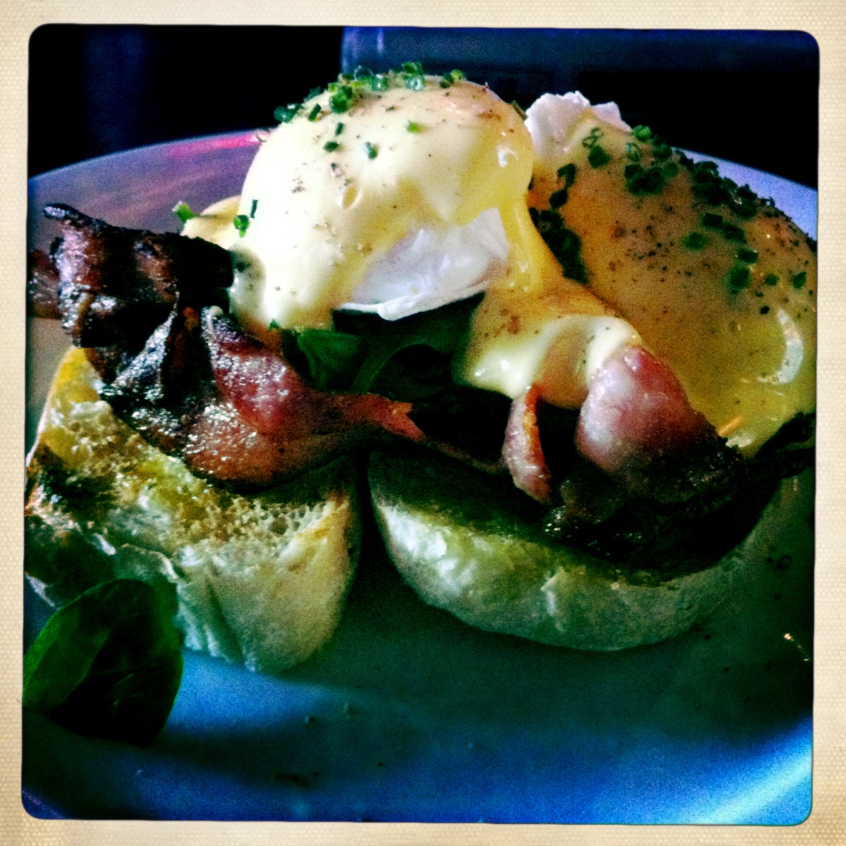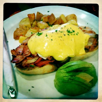 Now onto the food… Despite what I have said leading up to this paragraph the food was great and perfect for a Sunday breakfast/lunch affair (brunch). MS’ Eggs Benedict was a pretty significant portion size, even for him. The eggs were well poached, the potatoes slightly crispy, plenty of bacon and a nice big dollop of thick Hollandaise Sauce. He was pretty pleased with his Eggs Benedict and managed to polish off the entire thing while I stole a couple of Crispy Potatoes off the side of his plate.