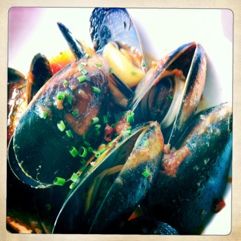 I order the Mussels in homestyle napoli sauce for entree and Tempura Prawns with salad and chips for main (I tend to get these everytime I come here because the prawns are pretty good).