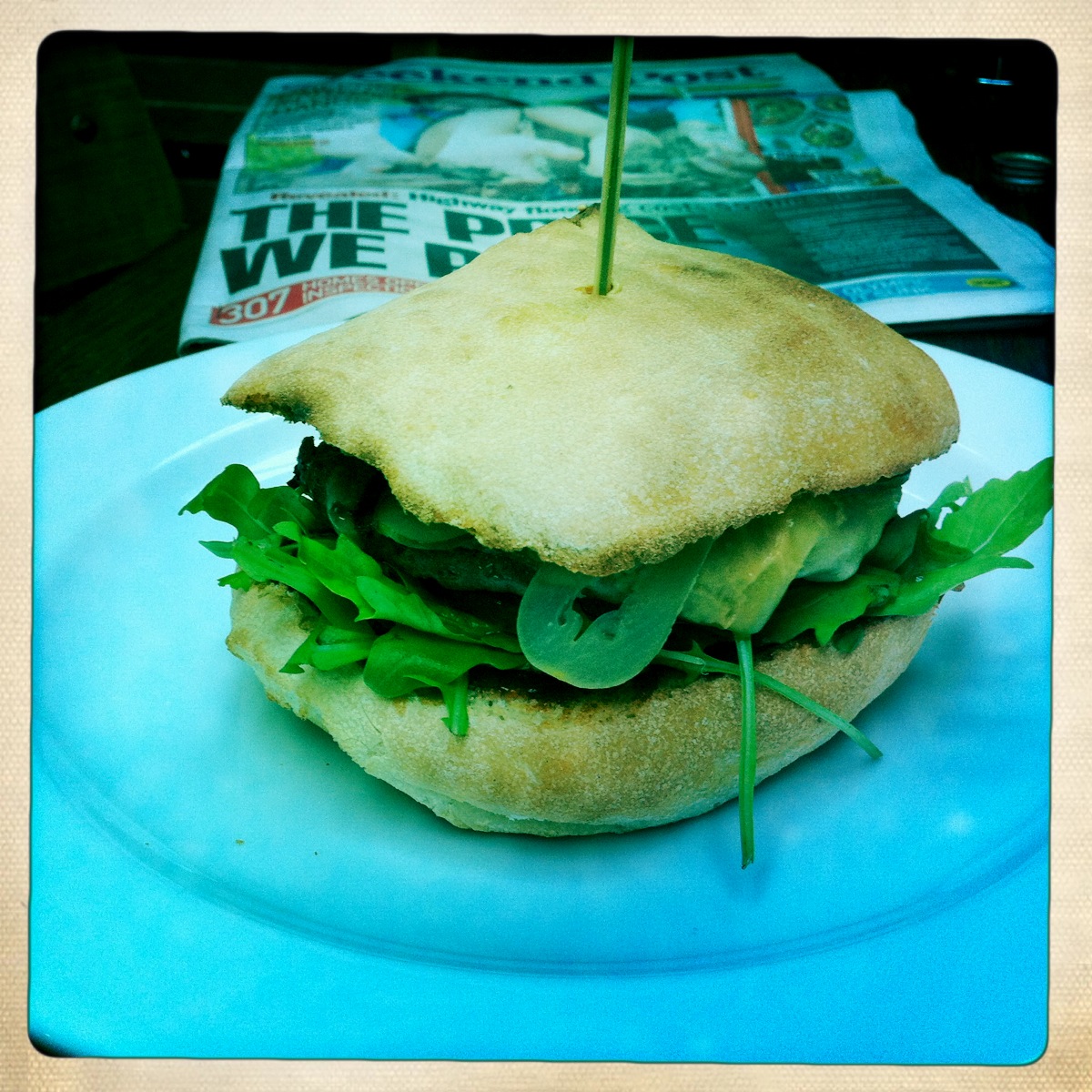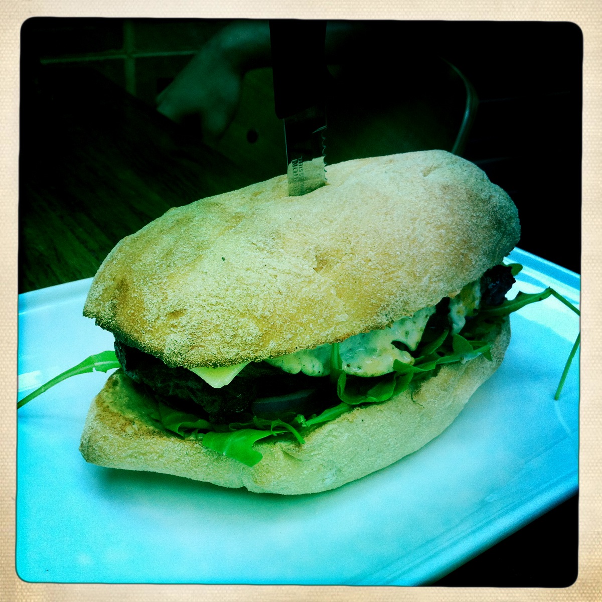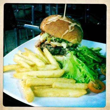 I asked the owner if I could have rocket instead of lettuce on my burger (not a fan of iceberg lettuce because it tastes like leaves – go figure), while MS asked if he could have the Beetroot Relish removed from his burger and I ummed and ahhed about which type of roll I wanted – Panini or Traditional. None of this was a problem for the friendly man behind the counter who waited patiently while we (I) made up our mind. He even gave us a taste of the Beetroot Relish to see if he could sway MS into having it on his Steak Sandwich. He was fighting a losing battle but it was worth a try. We took a seat and our burgers arrived not long afterwards. I’m not going to ramble on and on about my burger but it was goooood. Crispy bun, nice amount of filling, not too much sauce running down my hands and a good size – not too big, not too little. I really enjoyed my burger and so did MS and it cost us all of about AU$16.50. How good is that?