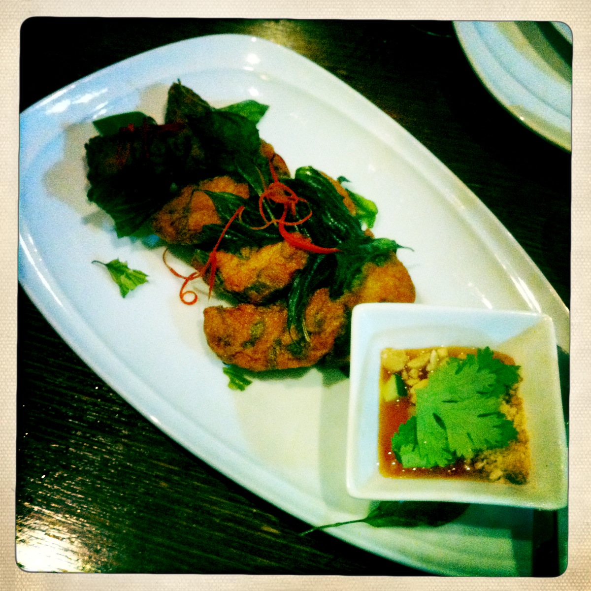 The last entree of the night was the Tod Mun Pla – Fish Cakes with Snake Bean, Lime Leaf, Crushed Peanut and Sweet Chilli Sauce (AU$17). The fish cakes were, well, they tasted like any other Thai Fish Cakes that I have had. Not to say that they weren’t yummy but compared to the other entrees they weren’t particularly exciting.