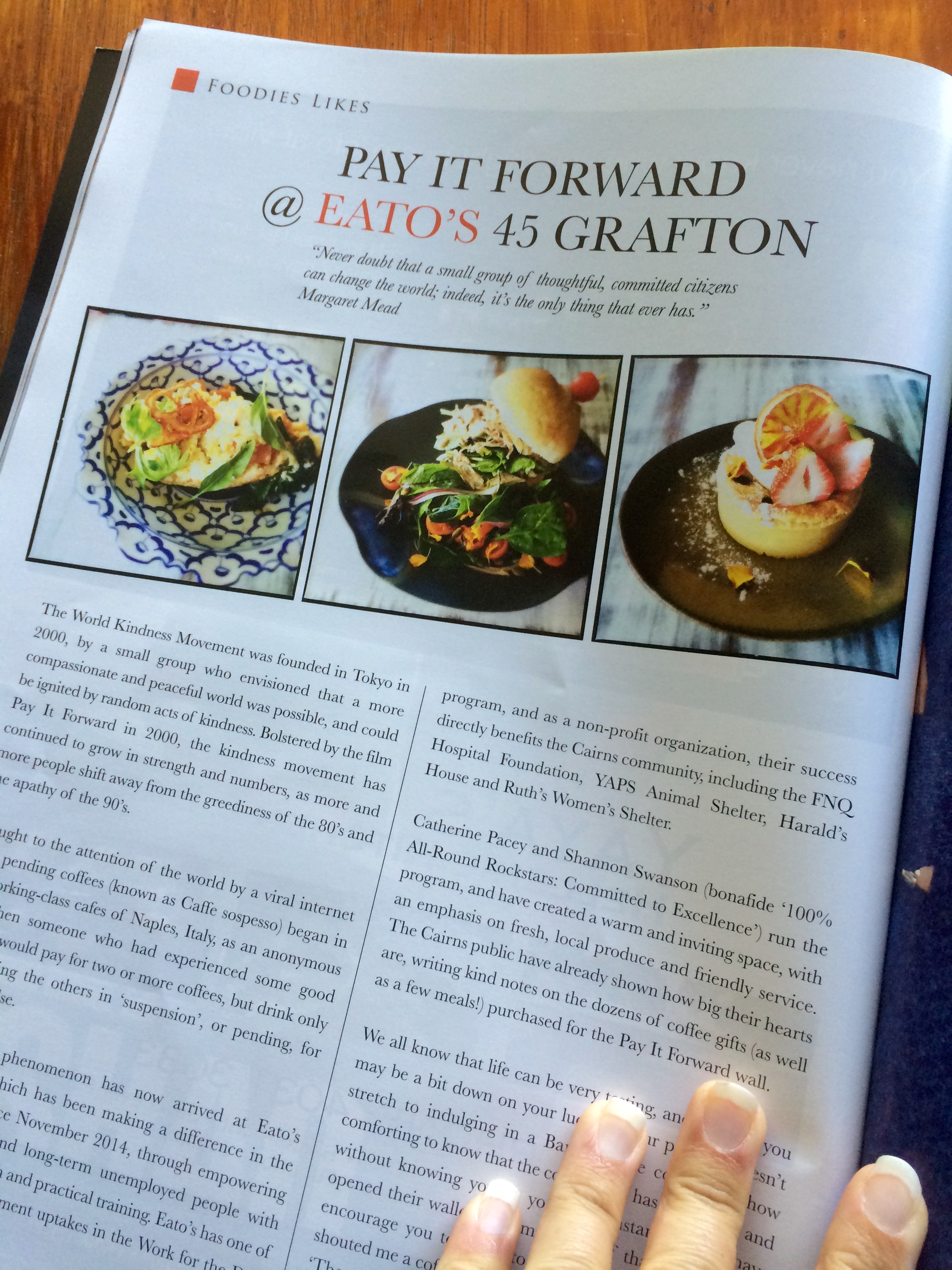 Great article in this month’s Cairns Life Magazine about Eato’s on Grafton Street. I’m pretty pissed that the Cairns Life thought it was acceptable to steal my photos and publish them as their own. These photos were featured on this blog in a review that I wrote about Eato’s Restaurant. I have stated on my website that all content is subject to copyright.