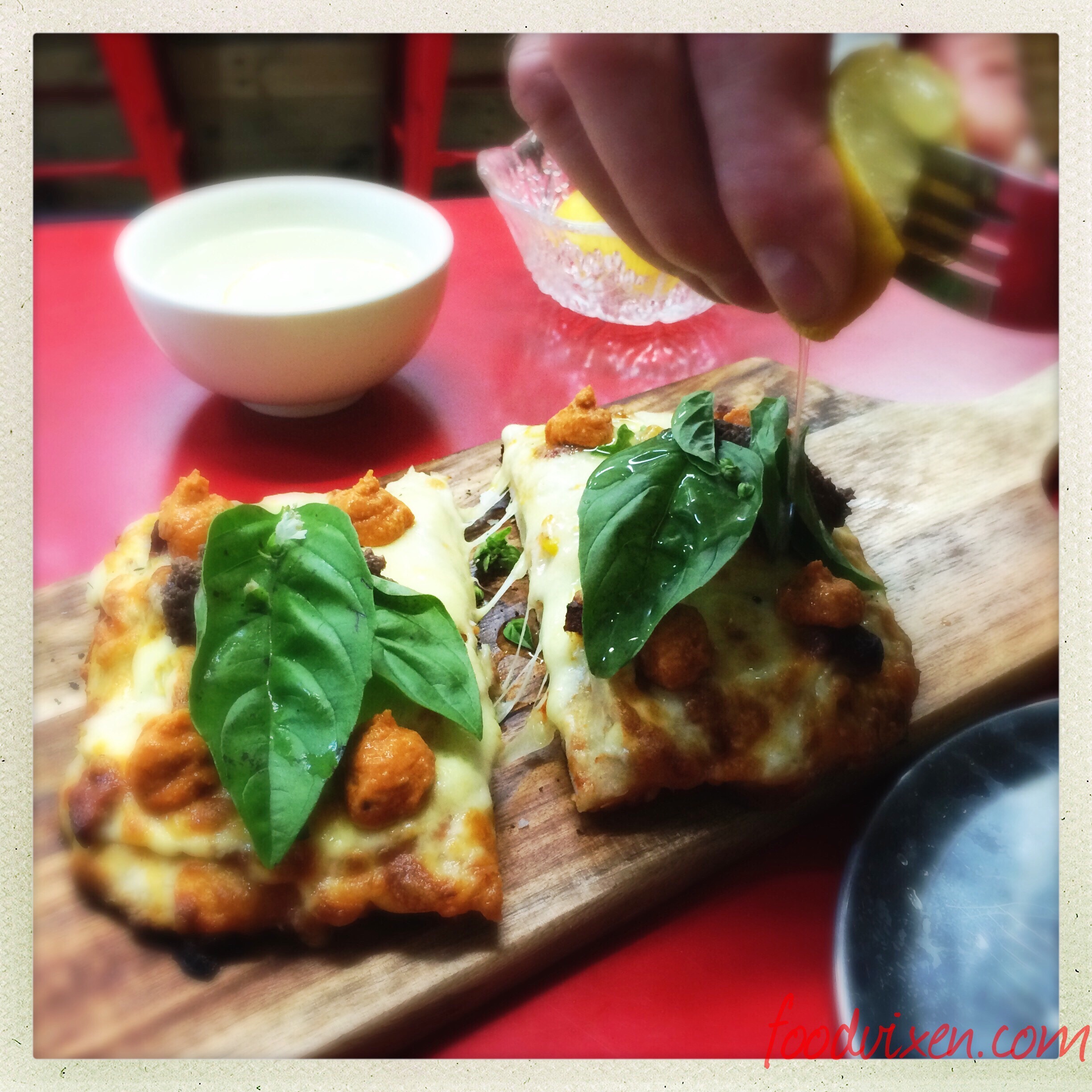 To start with we ordered the Garlic Bruschetta with Fresh Ricotta, Mint and Calabrian Chilli (AU$9) and the Burrata Caprese with Heirloom Tomato, Watermelon, Rocket Pesto and Raspberry Vinegar (AU$21). MS asked me what Burrata was and thinking I was all sophisticated and smart I told him that it was a type of Cured Italian Meat. Boy did we get a surprise when it the Burrata arrived at our table a short while later – a good surprise though! Turns out Bresaola is the Italian Cured Meat that I’d gotten confused with and Burrata is actually an Italian Cheese. Pfft I totally knew that.