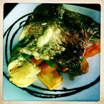 MS’ enjoyed his steak although it was a little overcooked, probably closer to Well Done than Medium but he’s not one to care too much about that, unlike myself. It was a pretty big meal but then again the steak was 350g. The Grilled Vegies that it came with were exactly the same as what my meal came with (Beans, Sweet and Kipfler Potatoes) so pretty much the only difference was the steaks were a different cut and mine had the additional prawns. The Sweet and Kipfler Potatoes were really yummy and the beans were still crunchy (the way they should be).