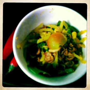 I could see the lonely chef busily working in the kitchen not far from where we were seated but despite how hurried he looked we didn’t wait too long for our meals to arrive. I did notice, however that the people next to us were served before us even though they arrived after us. The lady did say that they dined there often (I didn’t actually ask her she just felt the need to tell me) so it seems the staff may play favourites but I think she was on her lunch break from the hospital and since we had nothing in particular to do on this fine Friday I let it slide. Our food arrived on a large platter and I have to say it looked fantastic. We did get quite a bit of food between the three of us. Having never been to Bali (I don’t particularly want to go there) I can’t say whether this was genuine Balinese food but it tasted pretty damn good. We got three mixed sate’s each – beef, pork and chicken and they were grilled over their own little bed of hot coals. They had a really nice flame licked flavour and I particularly enjoyed the extra Satay Sauce that they give you on the side because lets face it, you can never get enough Satay Sauce.