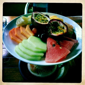 To top off our meal (once our plates were cleared) we were served a fruit platter full of fruit including watermelon, honeydew, rockmelon, passionfruit (only two halves between three though), grapes, grapefruit and pomelo. It was a nice way to finish off our meal and the fruits were really juicy and fresh. There was quite a bit there and we couldn’t finish it all despite trying.