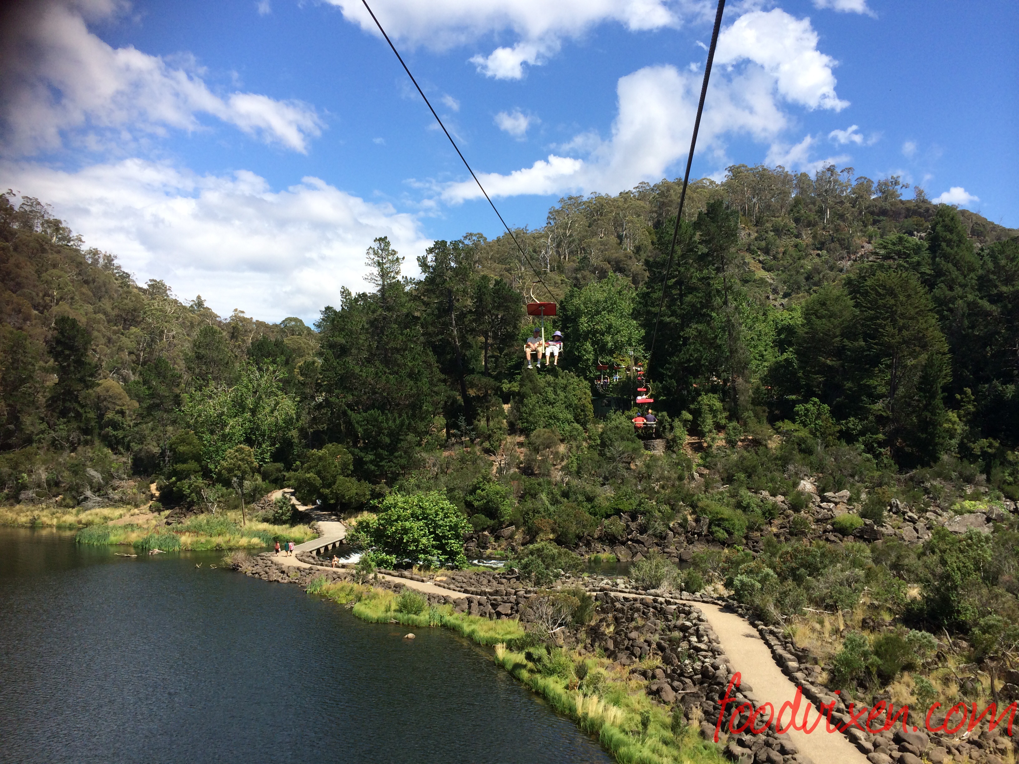 There was plenty of locals sunning themselves at the gorge and taking advantage of the glorious day as well as a few Chinese tourists running around with their now all too common selfie sticks. MS and I paid $12 each to take the chair lift from one side of the Gorge to the other with me worrying about the possibility of dropping my shoes in the water the entire way over. We finally made it back to the car (on the flat walk this time) and continued on to the Tamar Wine Route. Where’s the food you say? Yes, yes, I’m getting to it. Haven’t you heard of a preamble?