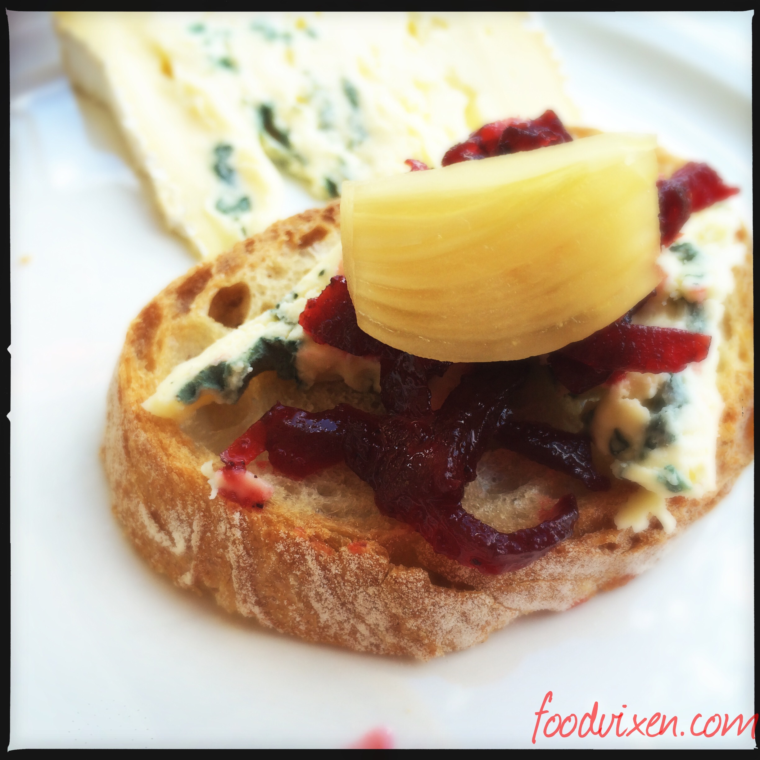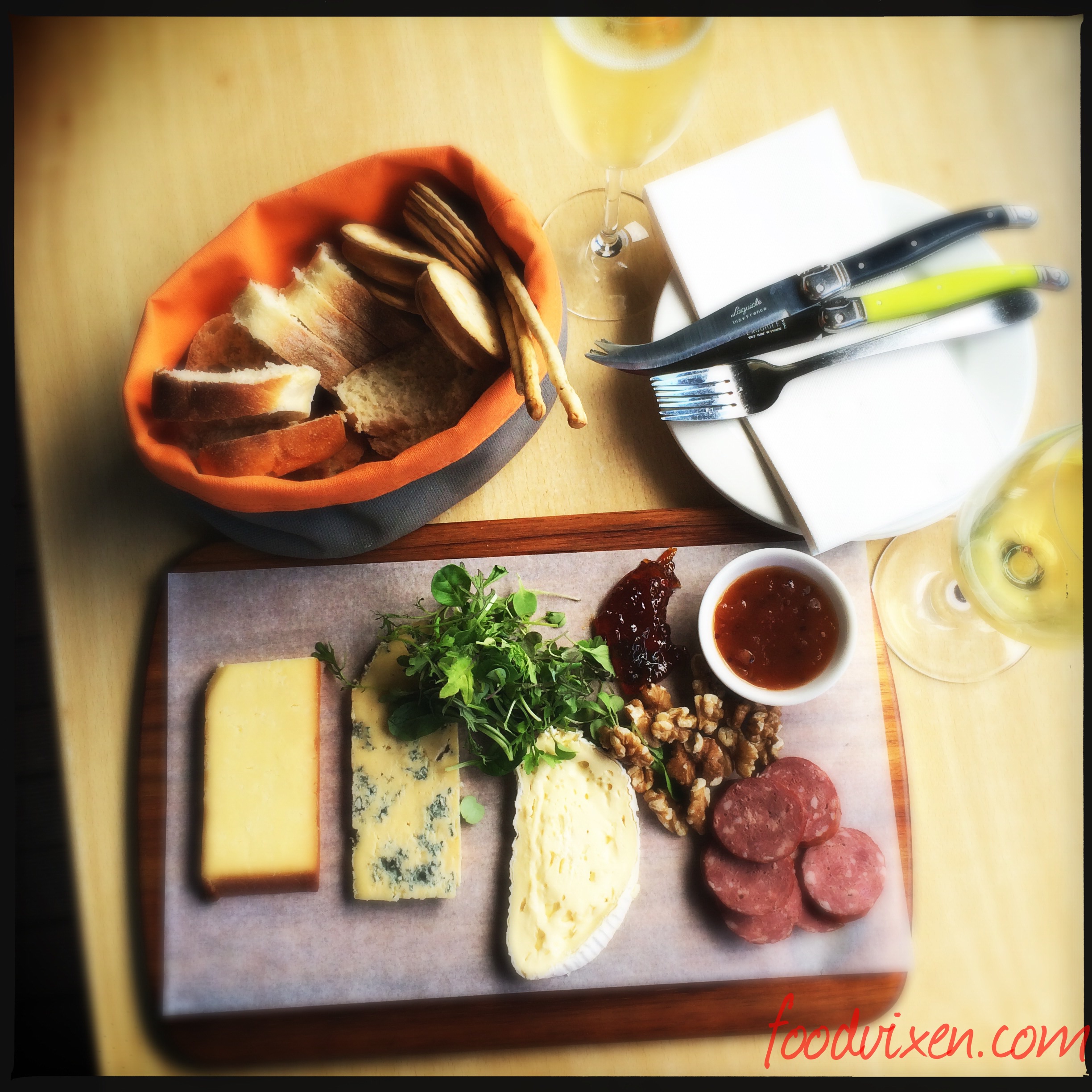 Tasmanian Tasting Plate – Two Tasmanian Cheeses, Smoked Quail, Chorizo, Blue Banner Pickled Onions, Wursthaus Terrine, Coal River Olives, Bills Beetroot Marmalade served with Sourdough for $40