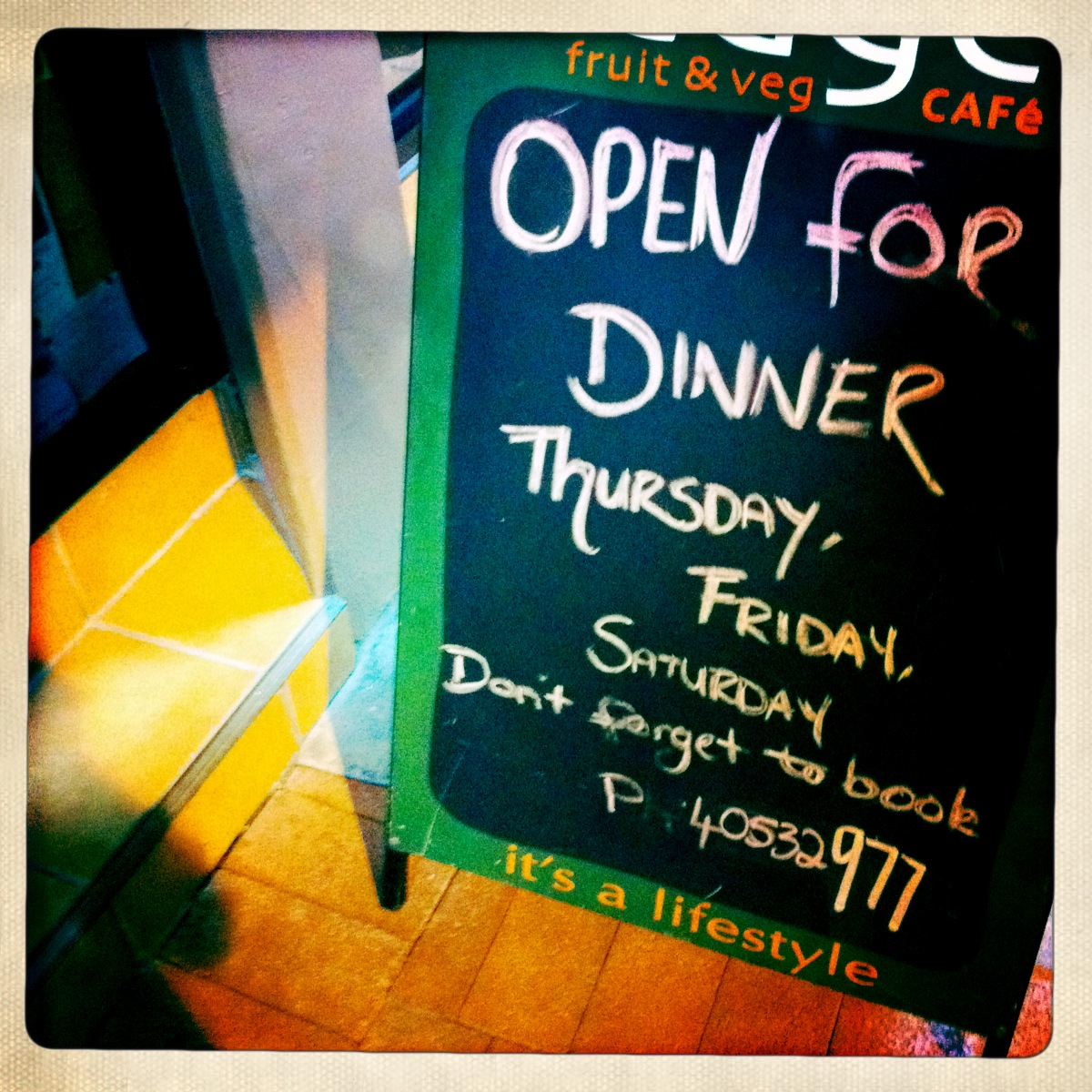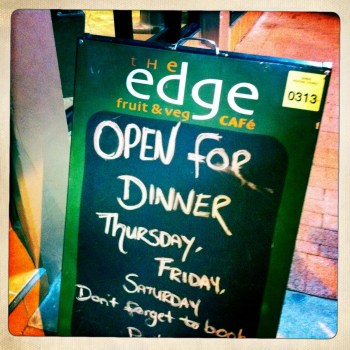 Saturday night and looking for somewhere nice to eat out I thought I would try The Edge Fruit and Vege Cafe in Edge Hill, which started doing dinners Thursday, Friday and Saturday nights only a few weeks ago. My sister works in Edge Hill and said they had passed some sample menu’s out to the nearby shops to drum up some support and she reckoned the menu looked pretty good. The Edge Fruit and Vege Cafe isn’t exactly known for doing dinners however not long ago this cafe was hosting sushi nights a few nights a week with ex Head Chef from Yama Sammy Kawano. Don’t know what happened to that…