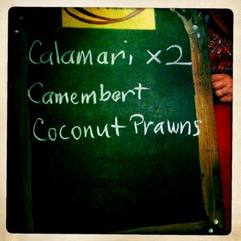 By complete coincidence I was invited by friends (BC, JuC and JoC) to dine at El Mundo Tapas Bar in Edge Hill on the same day that they made the front page of The Cairns Post and voted by Trip Advisor to be the number 1 restaurant to dine out in Cairns out of a whopping 177 restaurants. Do we really have that many restaurants in Cairns? Sheesh! I was certainly in luck to be going to El Mundo and also lucky that my friends had booked a few days prior because the place was absolutely packed out. I have noticed that when El Mundo first opened mid last year there was a couple of tables inside and a couple of tables outside. Since then that number has grown and now they simply cannot fit anymore tables outside. The entire sidewalk is now taken up by tables and chairs full of happy diners enjoying their tapas. I have dined at El Mundo previously and even attempted to review it but the pictures I took were so damn dodgy (even more so than usual) due to the poor lighting where I was seated that I decided it wasn’t worth doing a post. On this occasion however I had ample lighting to take pictures of the delicious plates of tapas that were arriving at our table. Now for those that haven’t been to El Mundo Tapas Bar before every month they feature a different type of cuisine. This month (December) is Turkish Month, while a few months ago when I last dined there it was Sri Lankan month. Along with their regular menu of mouth watering tapas they feature a selection of dishes from that particular country and instead of having waiters coming around and taking your order (they do take your drink order in a very timely fashion and regularly replace your water bottles) each table gets a little blackboard and some chalk to write down a selection of tapas of their choice from the tantalising menu. The waiter then comes and retrieves the blackboard from your table and ‘VOILA’! Your order has been placed. The blackboard ordering system is a fun and unique way of ordering your dishes.