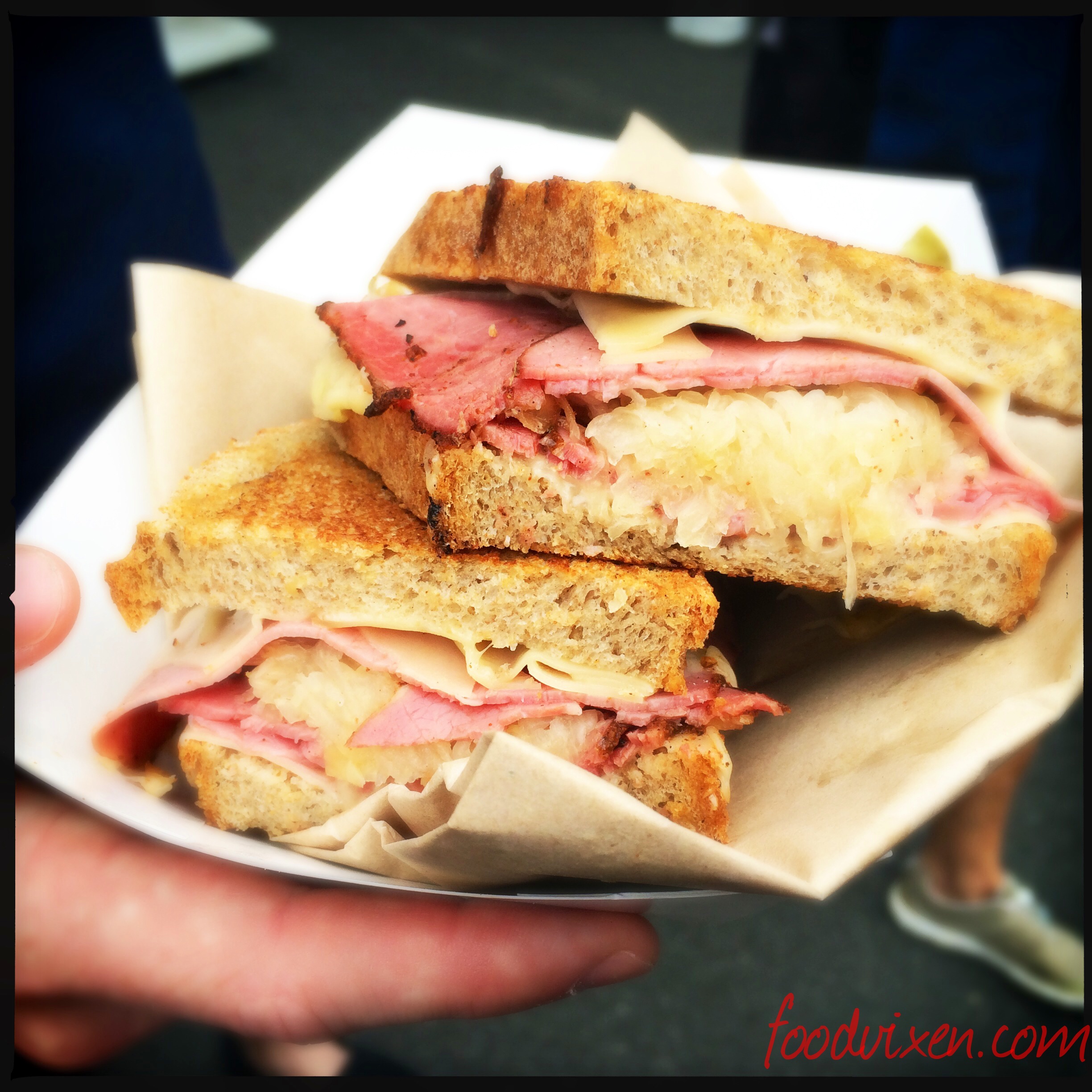 Never had I heard of lox before and it took some secret Googling in the line to make sure that it was in fact Smoked Salmon. MS went for the cream cheese with turkey bacon option with extra cheese, another tried and true tradition for him because he’s a fatty. The bagels were so fresh out of the oven they were still steaming when our expert bagel maker Gavin and his buddy Mad Rican cut them open and yet some dumbasses in the customer line still wanted theirs toasted. WTF?! Because American’s love variety with their 18 flavours of cream cheese there are also 14 different types of bagel to choose from at Ess A Bagel. You can get plain, sesame, poppy, salt, onion, garlic, oat bran, cinnamon raisin, 9-grain, pumpernickel, pumpernickel raisin, everything, whole wheat everything and bialy’s (a pastry/bagel type thing). By the time Gavin was done there was that much cream cheese and lox on my bagel that it weighed half a pound! That’s a whole lot of bagel!!!! It was without a doubt the best bagel we had on our trip, and we ate a sh*tload of bagels, much to the dismay of my size 9 jeans that I’m still having trouble fitting into 2 months later. It was warm, crunchy on the outside and soft on the inside with the perfect blend of lox and cream cheese and you seriously can’t beat a poppy seed bagel. Sadly for us though we went to go back another day and the line was even longer and we had a Broadway show to catch so we couldn’t hang around and I never got to go back for another *insert sad face*. One thing’s for sure though Ess A Bagel will be high on our priority list when we do return to NYC and it should definitely be on yours!Eating Ourselves Stupid in the USA – Philadelphia
