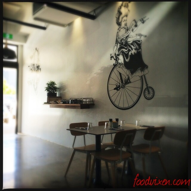 My backup lunch destination was the newly opened (as of yesterday in fact) Petit Café on Lake Street. Directly across the road from Woolworths mum and I were both blown away when we entered the schmick Sydney-esque interior with soft blue walls, IKEA type retro furniture and mirror like polished floors (although much to mums dismay no communal table).