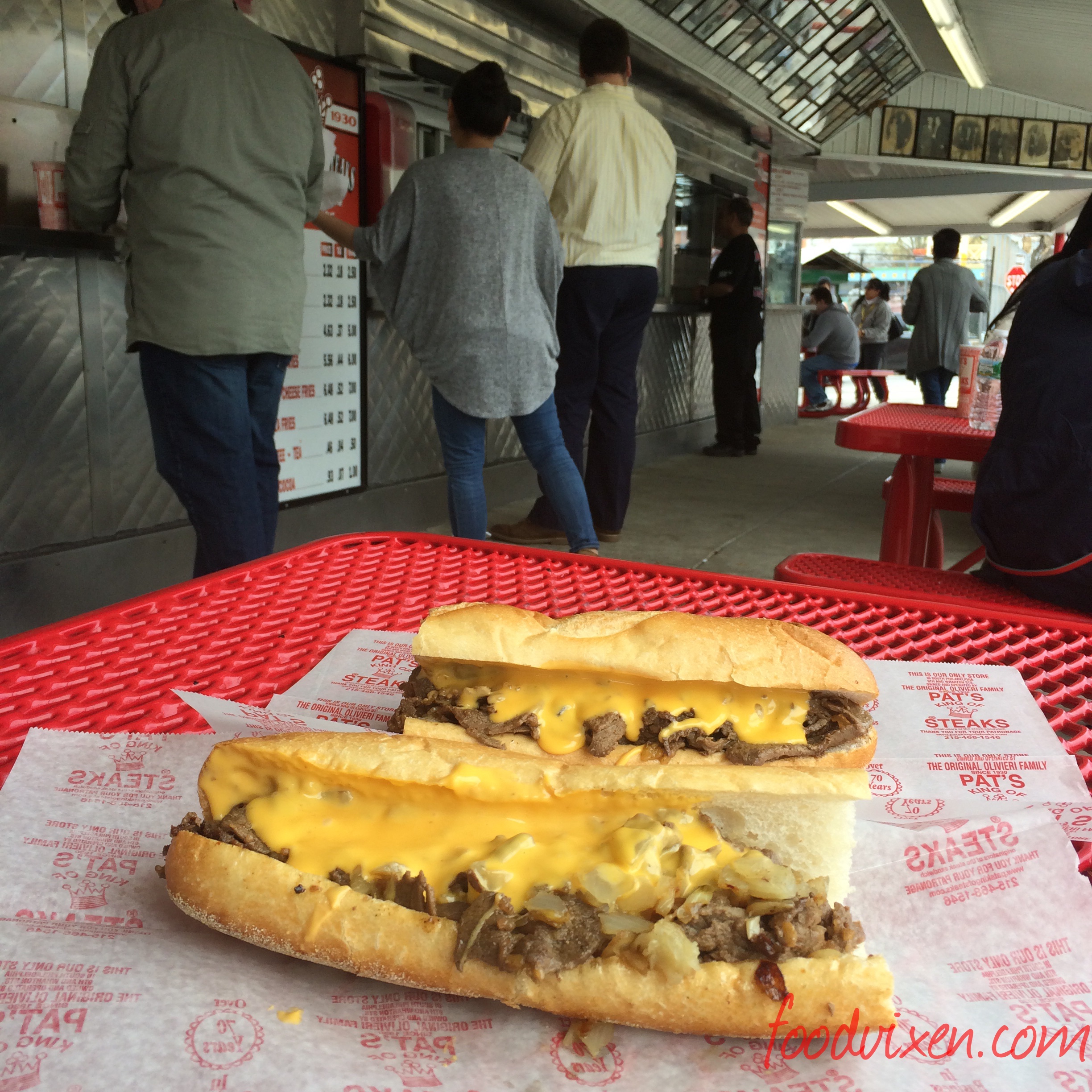 The man that served us at Pat’s was abrupt and spoke in a thick Jersey accent which I found to be not only amusing but pretty awesome! There’s a sign next to the counter that explains to newcomers like ourselves just how to order the Cheesesteak. As a humorous reference to the Philadelphia accent ordering with the simple words ‘wit’ or ‘wit-out’ means with or without onions so ‘wit’ it. We also added the wiz cheese instead of provolone after a recommendation from a friend of mine who had only a few weeks earlier visited Philly herself.