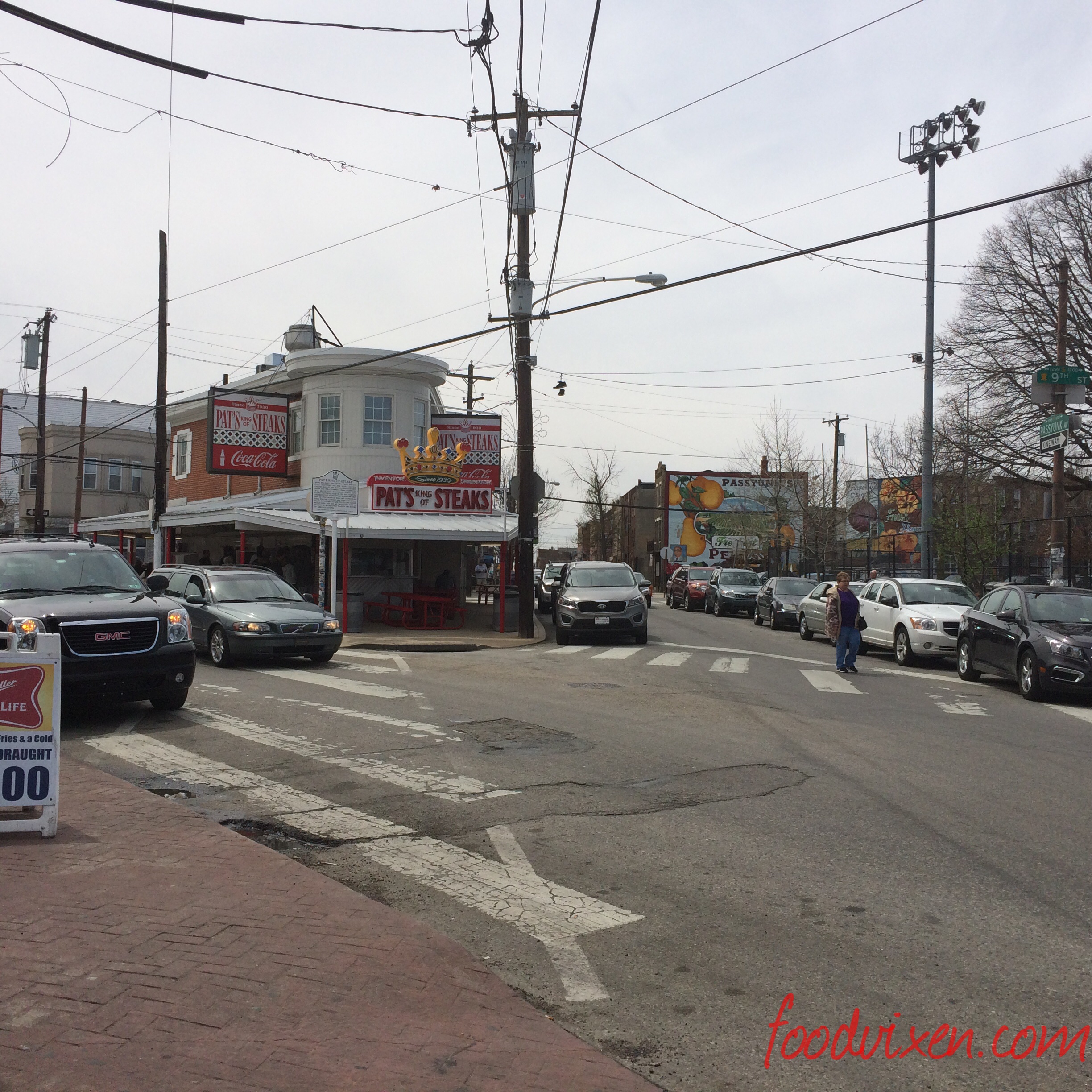 For our one night in Philly I had booked a room on AirBnB at a place which also moonlighted as a yoga studio. The price was good and I am all for staying in places that are just a little bit unique – most of the time. When we arrived our host Valerie gave us a tour of what literally was a yoga studio and informed us that we would have to vacate between 6 and 8pm that evening to make way for her yoga class. In that time she would pack up the air mattress and bed side tables and then return it all to its original place for our return. Yes I know it’s a little random but you seriously couldn’t beat the position of the yoga studio in terms of location – it was literally a 10 minute walk from the Rocky Stairs, fantastic restaurants and the Eastern State Penitentiary (a National Historic Landmark that was no longer in use). The only downside to the yoga studio was a bit of an unpleasant smell that I attributed to her two cats that proceeded to wander in and out until MS locked them out. Also it turns out that sleeping on an air mattress pretty much guarantees you the worst nights sleep of your life! First place we headed after dumping our bags was to the Rocky Stairs where it seems we weren’t the only people attempting to follow in Sylvester Stallone’s footsteps (literally). There was tonnes of tourists there doing exactly this as well as quite a few locals using the stairs for some HIIT. As with most popular landmarks in US cities there was someone at the top offering to take photos of us. l’m not an idiot and I’m also not one to be conned by this type of ‘friendly and helpful’ photographer however I did want some photos of MS and I together for once. When handing him my iPhone I was fully aware that I was going to be asked for some money at the end of it all. What I didn’t know was that he would ask me for US$20. That’s nearly AU$30 to take a few pics with my own camera!!! When he finished and asked for the money I nearly fell down the stairs in shock – You’ve got to be kidding me?! Apparently the had been taking photos at the top of the stairs for nearly 20 years and in the end I gave him US$5 for his terrible photos and he moved onto some unsuspecting Chinese tourists.Later on that evening, after a few rounds of shadow boxing, we were both feeling pretty hungry andI had carefully researched where to go for the famous Philly Cheesesteak Sandwich in Philadelphia. For those unaware of what a Cheesesteak is (do you live under a rock?!) well it’s a sandwich made from thinly sliced pieces of steak and melted cheese, served in a long roll. Despite there being plenty of places claiming to serve ‘the Best Philly Cheesesteak’ in all of Philly I thought it would be fitting to go to the place that started the Philly Cheesesteak movement – or so they say – “Pat’s King of Steaks”. Located in South Philadelphia Pat’s Steaks is directly across the road from rival Philly Cheesesteak restaurant Geno’s Steaks. After navigating the narrow streets and stopping to ask a friendly lolly pop lady just who had right of way at an ALL WAY STOP SIGN meant MS and I were lucky enough to find a park just across the road from the busy eatery.