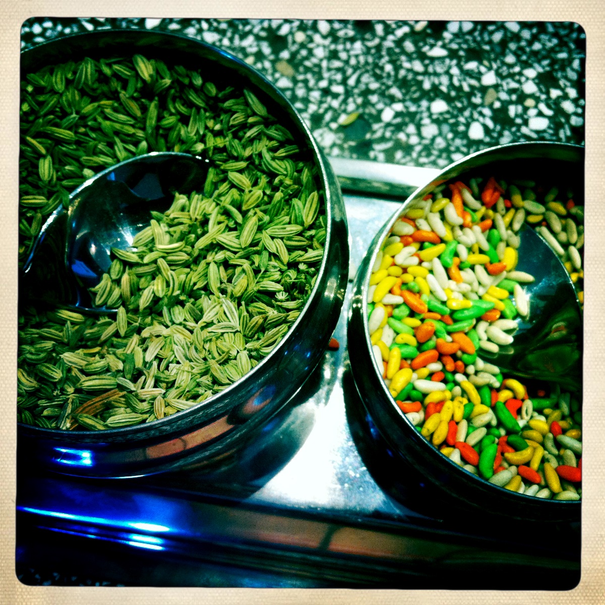 After insisting upon a serving of papadums and chutney to start with and a glass of Giesen each, EG and I decided that we would both order a meal and share it. That was fine with me I had already picked out the Butter Chicken (isn’t that what everyone orders at an Indian restaurant?) but much to my dismay and something I did not know about my friend was that she didn’t eat chicken. She then went on to tell me a hilarious childhood story about her pet chicken that she got for her birthday that she did everything with (he waited in her room for her to come home from school and slept in her bed) until one day she came home from school to find a pile of feathers in the backyard and her favourite chicken missing. She then went on to say that this story wasn’t actually the reason that she didn’t eat chicken more that she just didn’t like it. It was a funny story none the less.