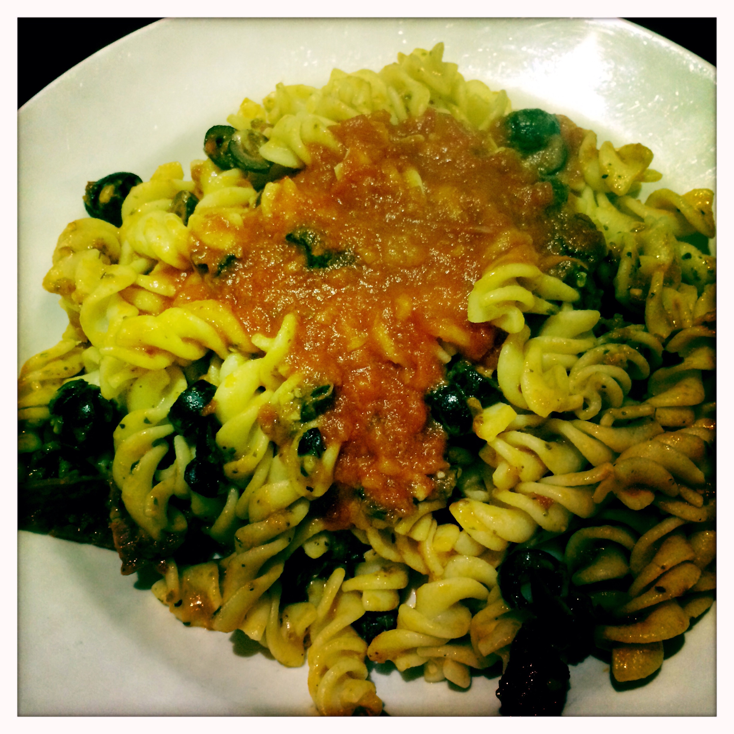 Spirali Calabrese – Spirals of pasta sautéed with pepperoni, olives, chilli, garlic, basil, oregano, mozzarella and Napoli sauce for AU$14.40