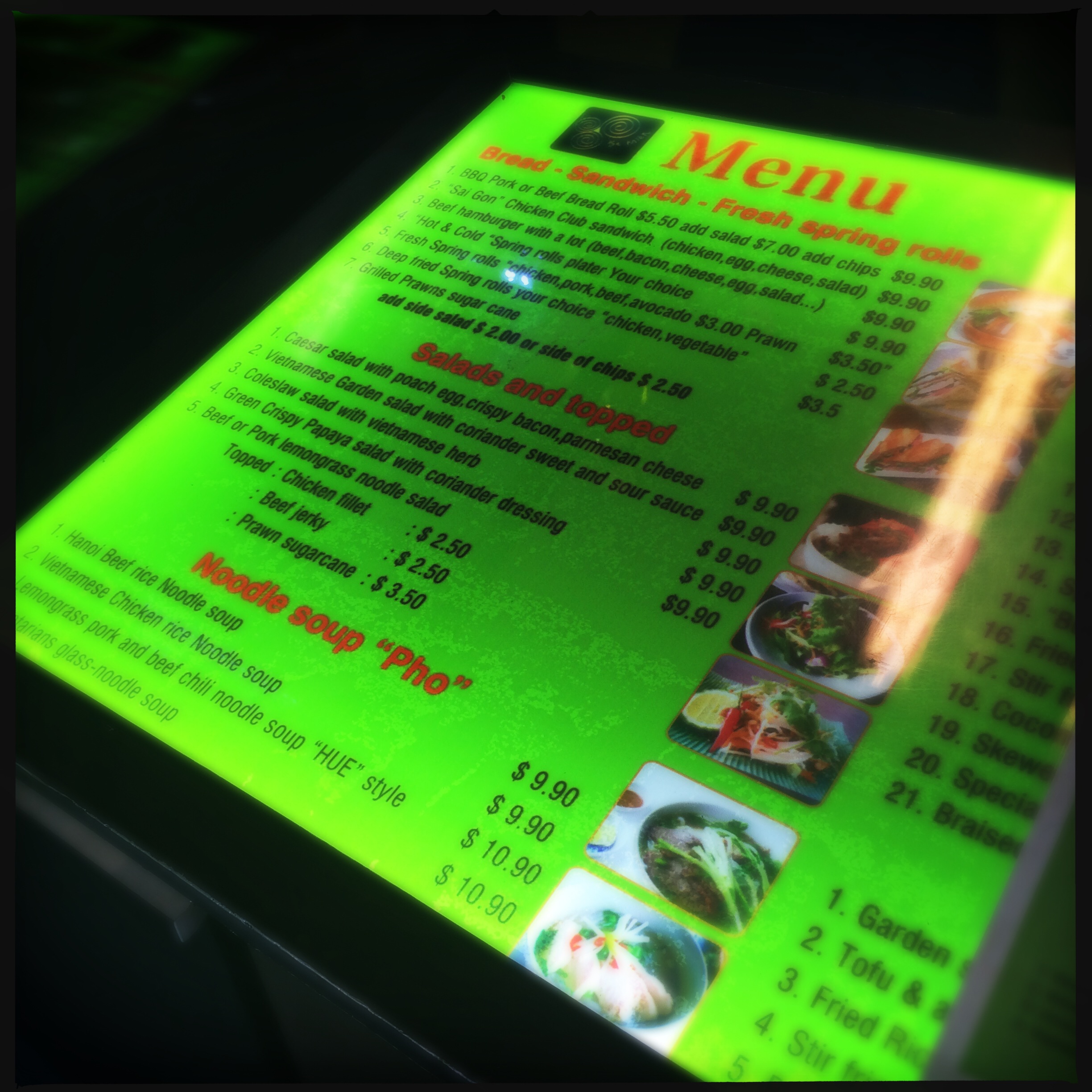Formerly the grease trap ‘Galloping Gourmet’, Ba Mien is cute, colourful and adorned with vibrant (but a little tacky) lime green walls and bottles of Sriacha chilli sauce. I must admit it’s really great to finally see some Asian cuisines other than Chinese, Japanese and Thai setting up shop in Cairns. I know for a very long time we didn’t even have one single Vietnamese restaurant in Cairns and now we have at least four that I can think of off the top of my head.