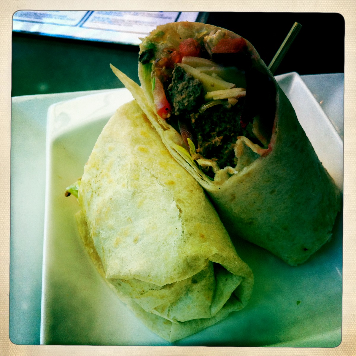 I was actually surprised at just how heavy my wrap was even before I unwrapped it. They certainly weren’t stingy on the ingredients at Hungry Monkey and just for a change (like with a lot of other cafe’s) the wrap wasn’t full of lettuce because I ordered mine without. Something about Iceberg Lettuce that just doesn’t sit right with me. It tastes like leaves (ew). And when it gets all warm from being toasted it tastes super nasty (again, ew). The Crumbed Chicken was freshly cooked and wasn’t pre-cooked earlier and reheated like at Subway. It was real chicken and it was crunchy and succulent. The Jalapeno’s were awesome of course but the best thing about it was the decent size of the wrap.