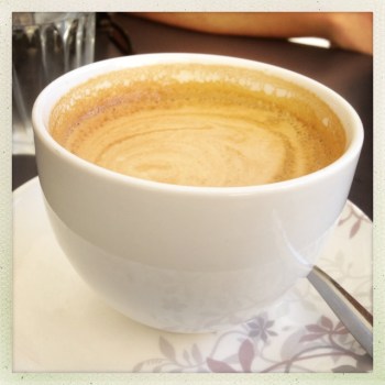 Our beverages arrived in ample time and although my coffee was excellent I was more interested in MS’ Banana Smoothie. Lucky for me he harbours no qualms about sharing his food or drink unlike yours truly. It’s the age old thing with me, I never wanted it until I saw someone else with it (unless it’s a pair of Jeggings). The same goes for food and drink. I can’t drink a whole can of soft drink but I will happily share yours. Anyway so the Banana Smoothie was delicious and used nice ripe bananas rather than nasty green ones that should have been left in the fruit bowl for another week to ripen. Like I said my coffee was excellent, apparently they were trialling a new brand and wanted some feedback which I happily provided giving it the thumbs up.