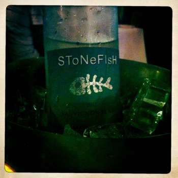 I booked us a table the previous day and lucky I did because Ochre was quite busy for a Tuesday night. I would say about 2/3 full with a large majority of those diners being tourists. (Whoever does the marketing for Ochre is doing an exceptional job particularly in the overseas visitor department). Upon arriving we were shown to our table for two near the window amongst the other diners and the dim lighting where we ordered our drinks. Ignoring the descriptions of wine on the menu I was taken by the name of the wine and asked for a bottle of Stonefish Sauvignon Blanc for the two of us. Note to self: In future, don’t just choose it because you like the name of it. The waiter poured us a glass of water each and fetched out bottle of wine.