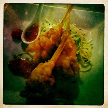Tempura Bay Bugs on Lemongrass, Green Papaya Salad and Sweet Chilli Lemon Myrtle Dipping Sauce (AU$36)