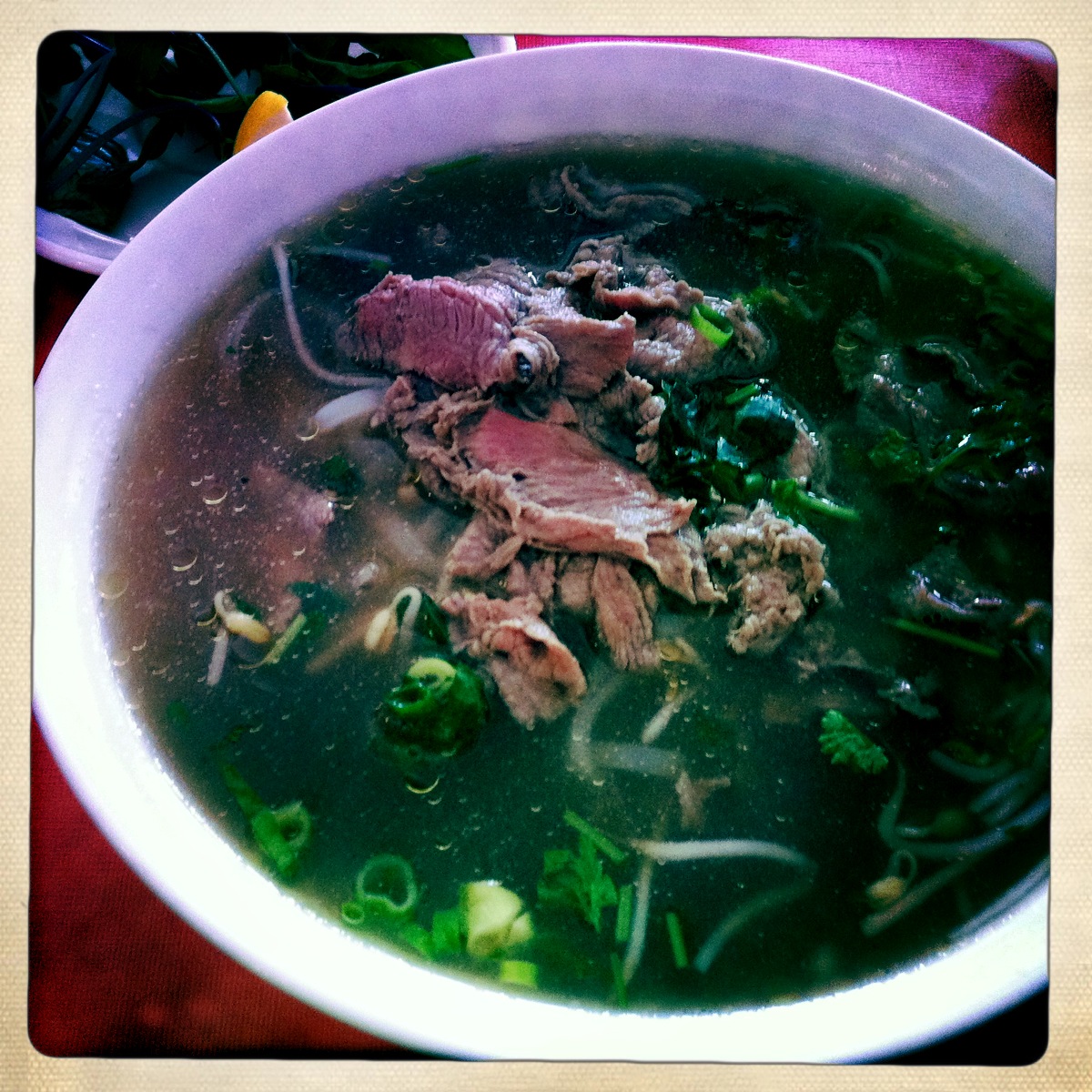 Now to my Pho… It was superb. A nice big bowl, they weren’t stingy! The beef stock was rich and flavoursome unlike the less than appertising Pho that I was served at a particular Cairns restaurant starting with ‘B’ and ending with ‘obby’s’. There was so much that I couldn’t finish the whole thing but MS helped me out and now it seems that he too has quite a penchant for Pho. The garnishings of bean sprouts and Thai Basil that arrived on a separate little plate for me to add myself were super fresh and fragrant. YUM!